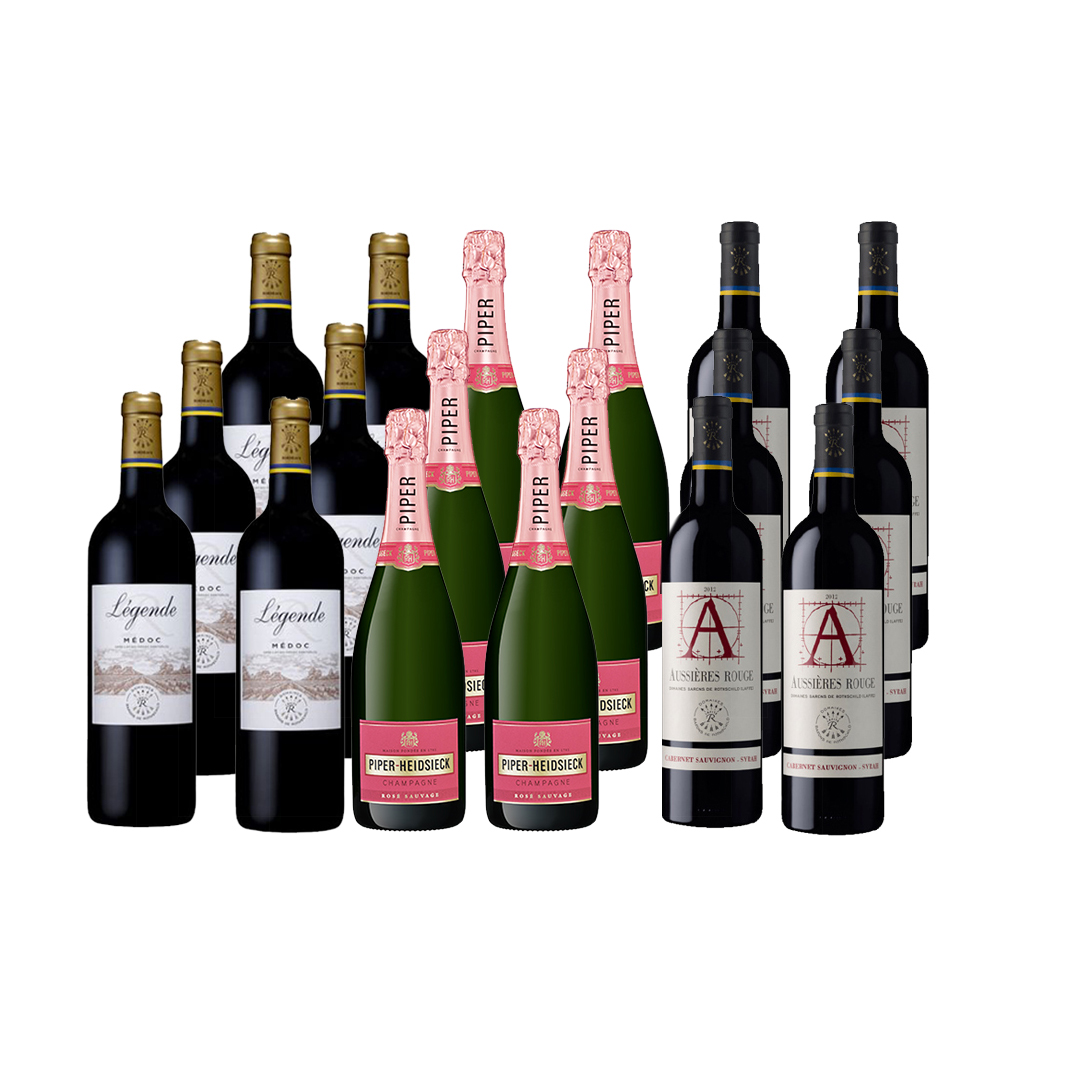 【18支優惠套裝(每款6支)】白雪香檳玫瑰 75cl, 傳奇梅洛克紅酒2015 75cl, 奧斯葉紅酒2010 75cl